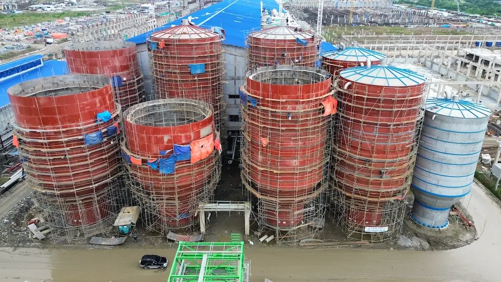 Fabrication, erection & installation of 21 Tanks of various capacities, ranging from 1500m3 to 5000m3. Pre-fabricated at our warehouse, installed on clients' site. Materials handled : carbon, composite & stainless steel
